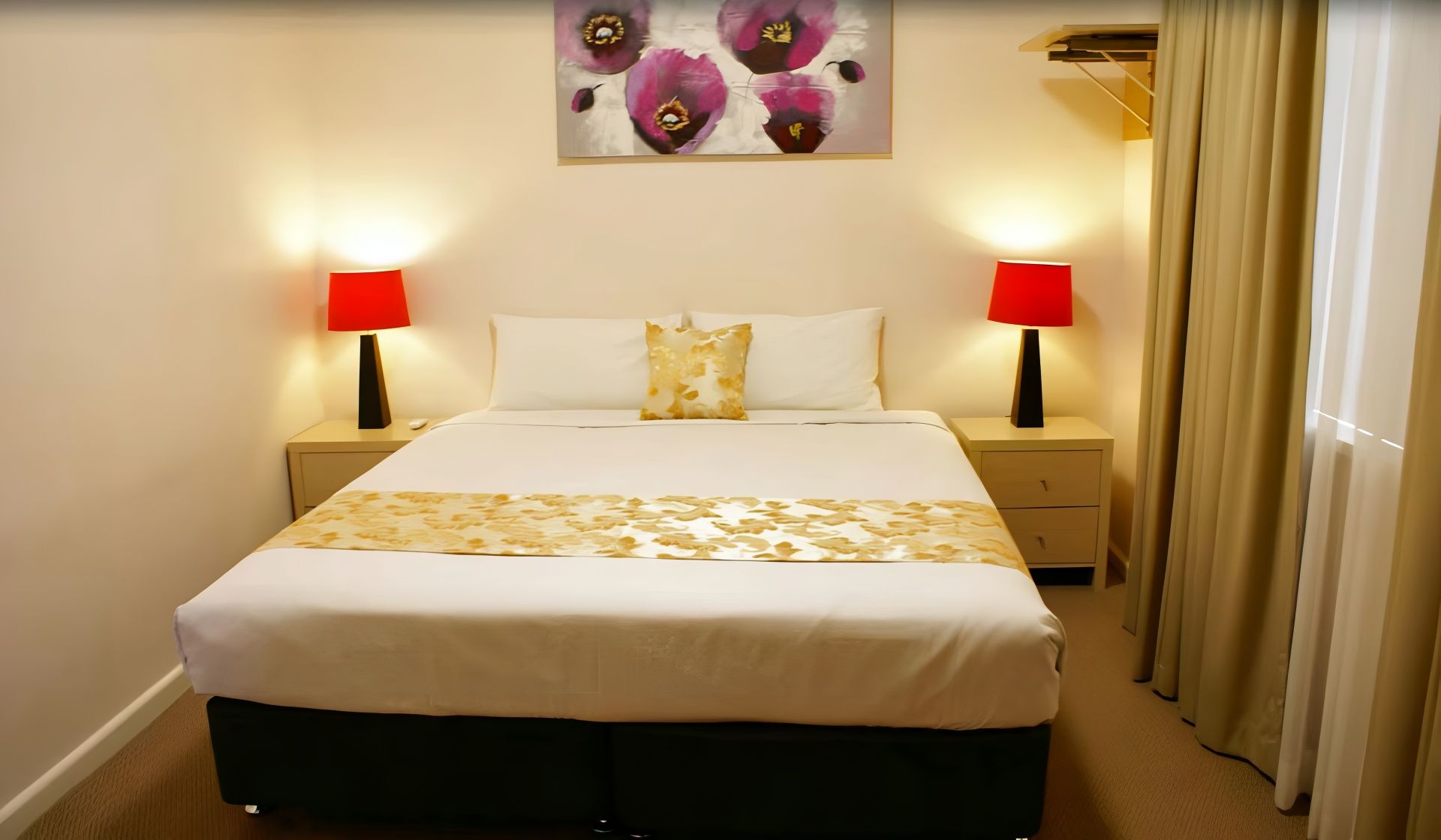 For 1 to 2 persons, non-smoking room with luxury pillow top queen bed, free WiFi, tea & coffee making facility, flat screen LCD TV, reverse cycle air conditioner, lounge or small dining table, onsite parking.