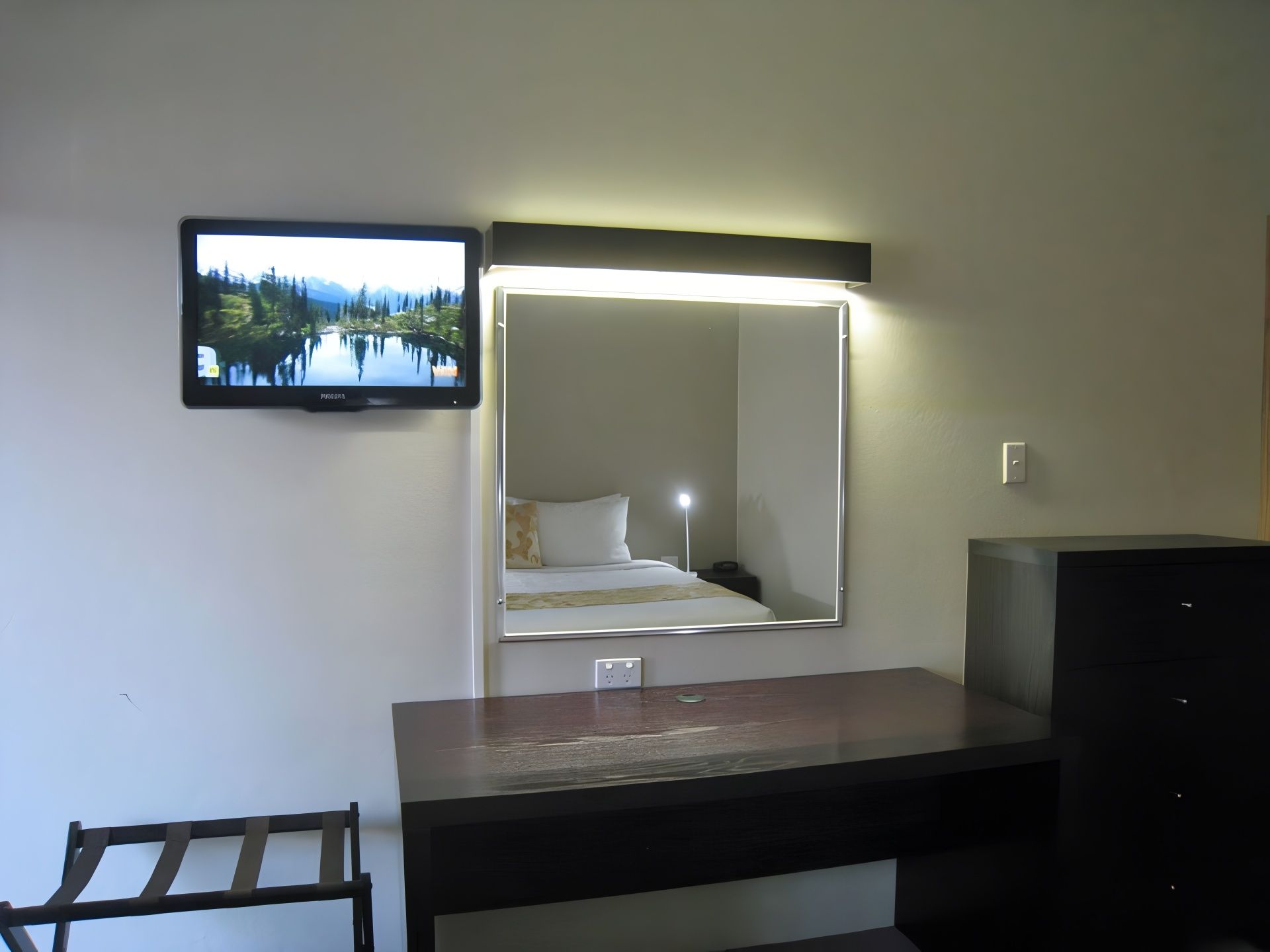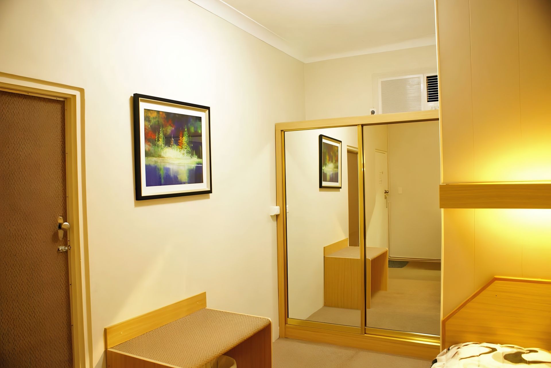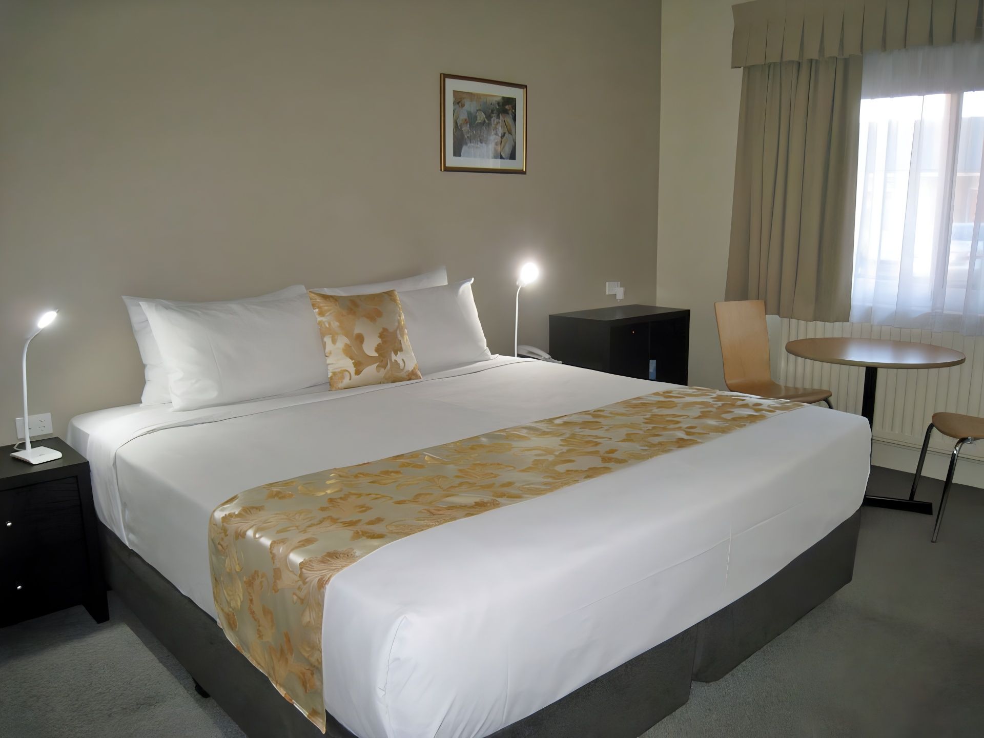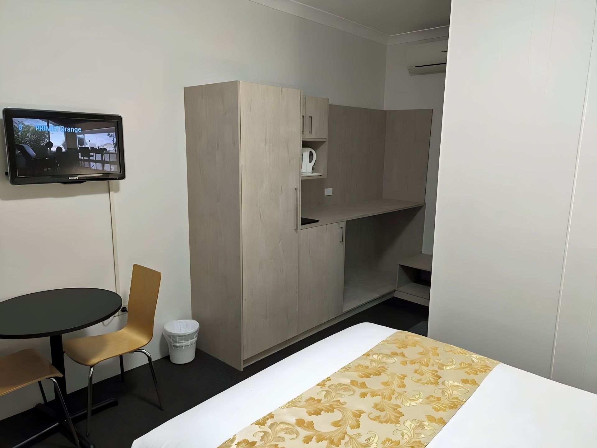 For 1 to 2 persons, non-smoking ground floor renovated room with luxury pillow top King bed, desk, small dining table, flat screen LCD TV, reverse cycle air conditioner. Next door to Panther league club, cinema, restaurants, museum, race track, CBD.