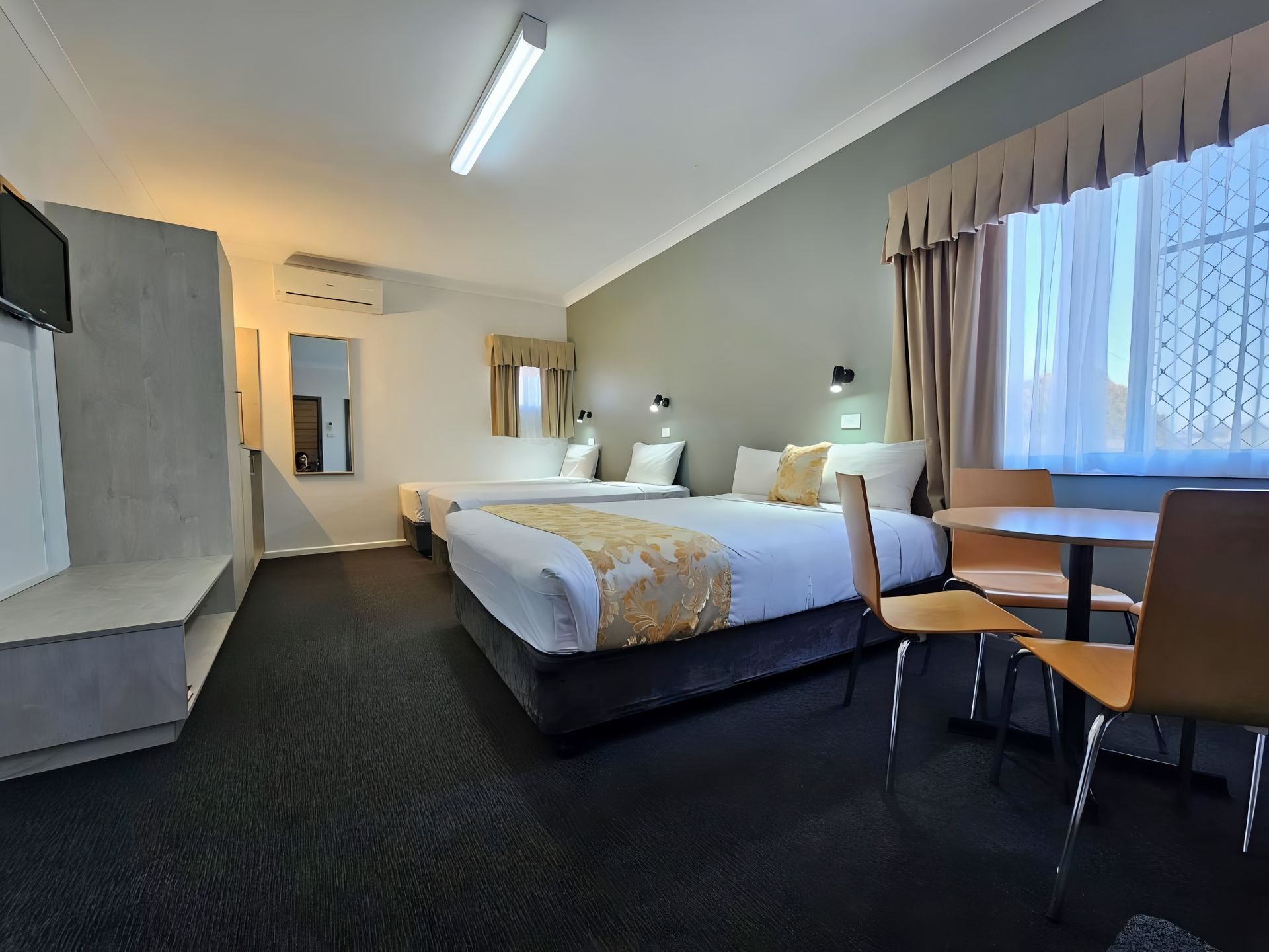 Up to 3 persons, non-smoking room with a double or queen and a single bed, free WiFi, tea & coffee making facility, flat screen LCD TV, reverse cycle air conditioner, onsite parking.