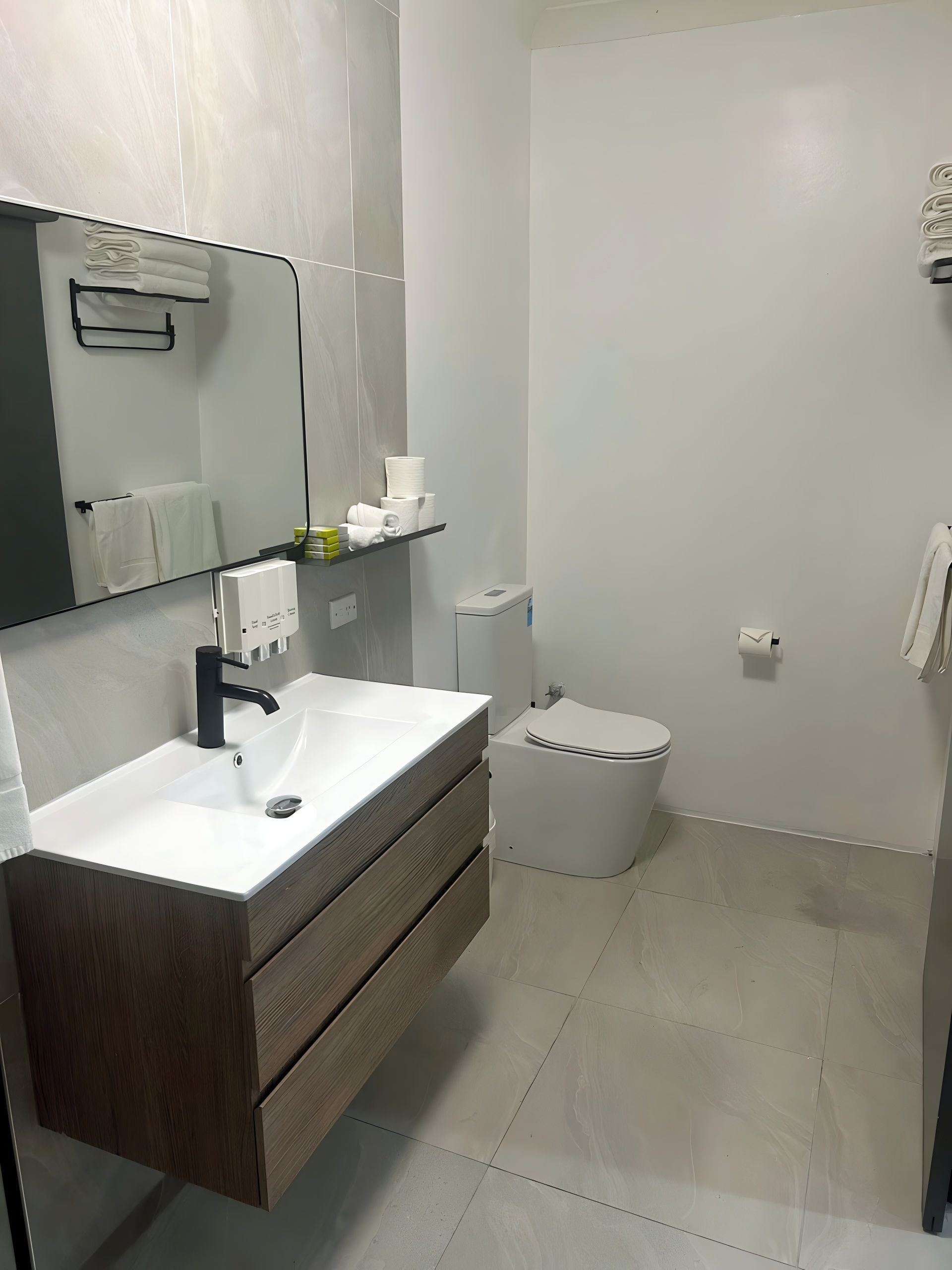 Brand new non-smoking self contained 2 (or 3) bedrooms, 5 star pillow top King bed in main bedroom and 2 single beds in second bedroom. New modern bathroom and new full kitchen, dining area, lounge, free WiFi, tea & coffee making facility, large flat screen LCD TV, reverse cycle air conditioner, balcony, onsite parking. Optional third bedroom with one pillow top queen bed. This room is upstairs.